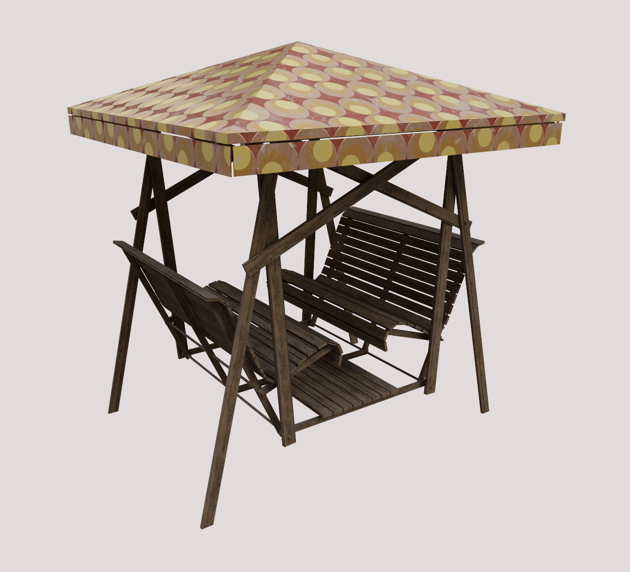 Pihakeinu ja rintamamiestalo. Keinu on mallinnettu Blenderissä ja talo Mayassa/Blenderissä. Kummankin tekstuurit Adobe Substance Painter.